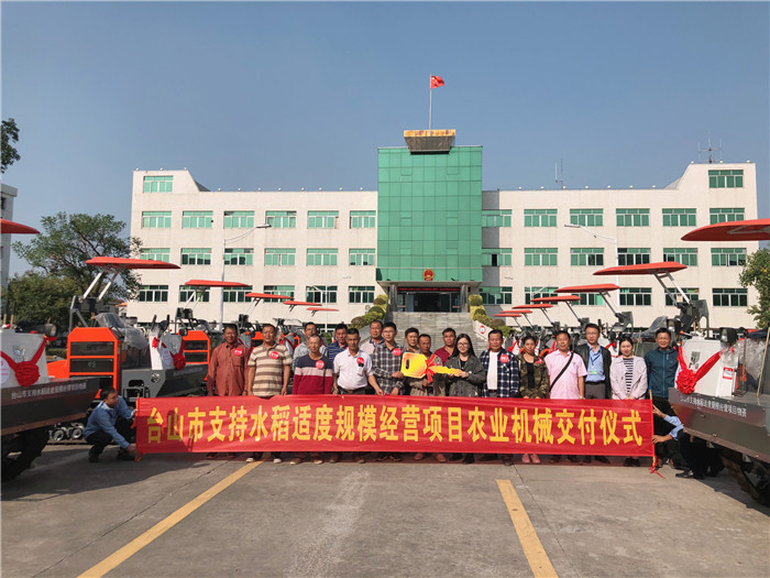 根据台山市2018年支持水稻适度规模经营项目方案实施要求,为完善农业支持保护制度,发展多种形式适度规模经营,培育新型农业经营主体,健全农业社会化服务体系,进一步推动我镇构建现代农业产业体系、生产体系、经营体系,11月20日下午,落实项目实施的物资提供公司——广东弘科农业机械研究开发有限公司和斗山镇政府农业和农村办公室在镇人民政府大院举行了旋耕机的交付仪式。十三台农业机械设备顺利交付到我镇的十三名种植大户及家庭农场场主。种植大户和农场主们认为这些机械设备对农业生产有很大帮助,于是他们纷纷对党和政府在农业生产上的重视和大力支持表示感谢。