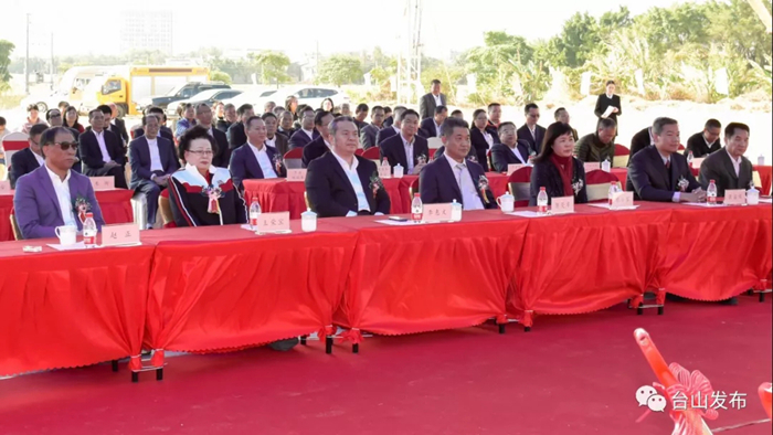 梁富鸣和方健康分别代表江门、台山对项目顺利开工表示祝贺,希望项目业主和施工单位大干快上,高标准、高效率推进建设,力争早日投产、早日见效。同时希望更多的华人华侨回来投资创业,地方政府和相关部门会一如既往地关心、支持侨商发展。