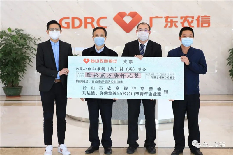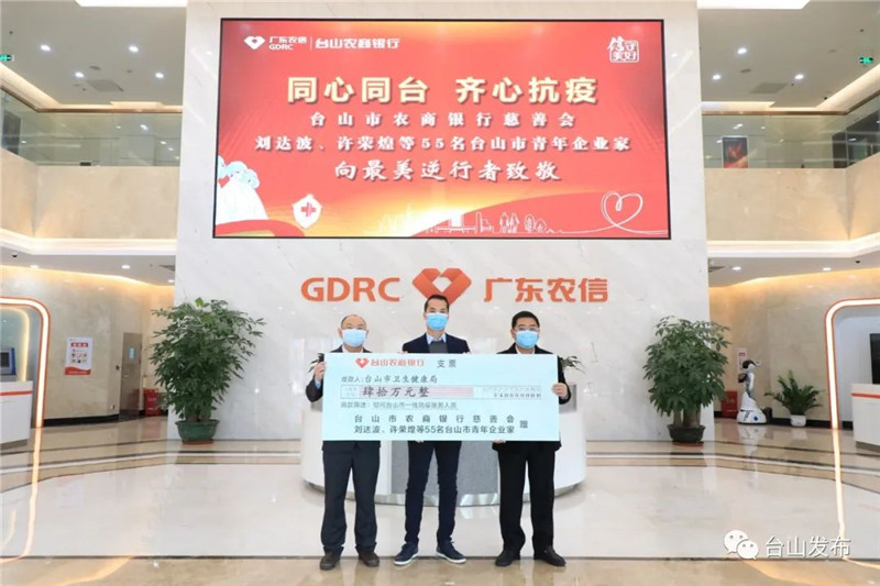 2月21日,台山市农商银行慈善会向市卫健局、市镇(街)村(居)委会捐赠100多万元,支持我市一线抗疫人员,为他们加油鼓劲。