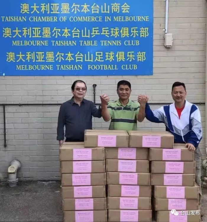 新冠肺炎疫情防控,牵动着广大海外侨胞的心,身处南半球的澳大利亚墨尔本台山同乡会从台山市委统战部来电得知家乡防护口罩、防护服等医疗物资紧缺的情况后,迅速行动,鼓励会员调动多方资源寻购医用防护物资,谭少槐等侨胞带头捐资出力。
