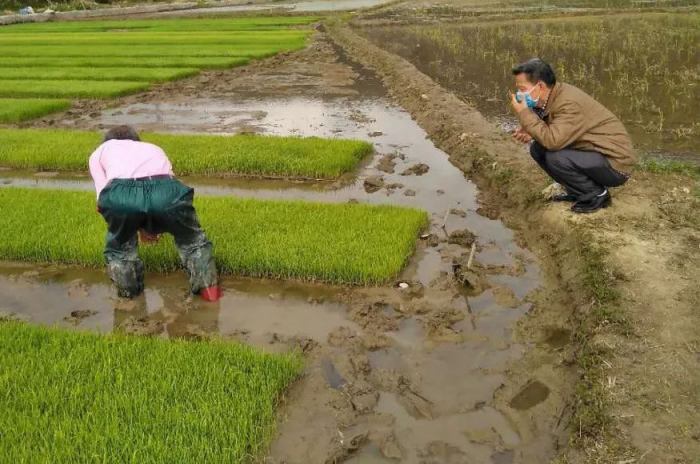海宴镇农办组织农业技术指导人员深入田间地头,指导农民群众抓好春耕生产,大力推广集中育秧,农膜育苗等农业技术。采用专业人员结对指导方式,指导种植大户使用农业机械,加快犁耙办田进度,提高播种质量,扩大农机化作业面积,抓好水稻机械化育插秧示范推广工作。