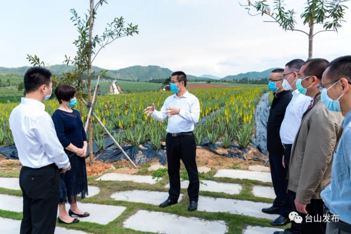 台山美环健芦荟制品有限公司投入2千万元,打造集技术研发、产品展示、观光旅游于一体的研发中心,并与芦荟种植基地连成一线,实现三产融合发展。项目预计今年4月底投入使用。谢少谋对企业全产业链发展及三产融合的模式充分肯定,希望企业继续发挥独特的技术优势,把芦荟庄园打造成台山乡村旅游的标杆,不断扩大产业规模,做大做强。