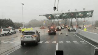 台山援鄂医疗队坐上大巴,返回江门。