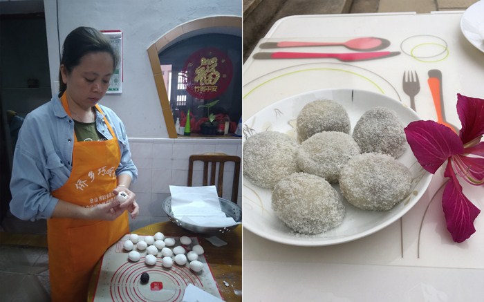▲学员制作椰蓉糯米糍