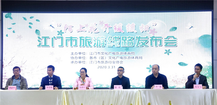 为推动江门文旅行业复苏,引导清明小长假文旅消费,宣传江门文化旅游特色,全方位展现江门侨乡之美,3月31日,由江门市文化广电旅游体育局主办,各市(区)文化广电旅游体育局协办,江门市旅游行业承办的“陌上花开缓缓归”江门市旅游线路发布会在台山市芦荟庄园成功举办。本次发布会向全市市民全方位推广清明小长假期间江门短线旅游线路,引领江门文旅消费新热点。近日,马蜂窝旅游发布了《2020年春季旅游回暖趋势报告》,报告对清明小长假前后的旅游回暖趋势进行了分析和预测,其中江门在全国排名第五。按照精准防控要求,本次推出的30条旅游路线主要以户外短途自驾游为主,旨在让大家摘下口罩,走出家门,走进自然,感受这久别重逢的大好春光。江门市文化广电旅游体育局汤惠红局长、柳超球副局长,各市(区)文化广电旅游体育局局长,江门市旅游行业协会负责人及中新社、网易、凤凰新闻、触电新闻、南方日报、江门日报等新闻媒体共约60人出席了发布会。