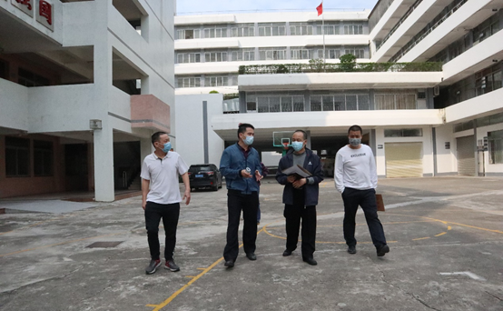 台山市技工学校校长陈华向检查组介绍了当前学校疫情防控开展情况以及物资储备、各类人员管理、开学后勤保障、食宿安全管理等情况。