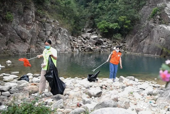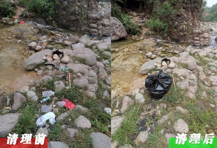 为清除垃圾,保护青山绿水,由赤溪镇新时代文明实践所提和社工组织的“不留白色污染的旅程”志愿服务活动在这里展开。