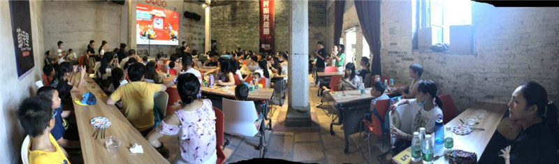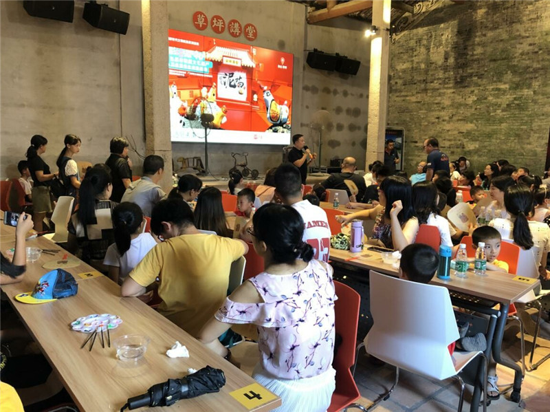 “各位小朋友,现在每人手上有一只还没上色的泥鸡,鸡身上有一个小洞,吹起来小鸡会伸长身子,发出声音。现在你们利用台面上的颜料,为你们手中的泥鸡涂上你最喜欢的颜色和图案吧!”在台山市水步镇草坪里的草坪讲堂中,冯永勇先生正在为在场100多名小朋友和家长讲解如何吹响“镇濠泥鸡”和彩绘新衣裳。