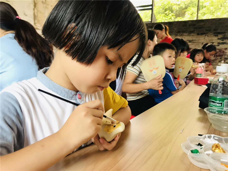 为了丰富儿童对本地传统文化的知识,5月31日,在“六一”儿童节来临之际,水步镇新时代文明实践所联合草坪里项目方邀请了省级非遗传承人冯永勇先生来到草坪讲堂分享关于泥鸡的故事,开展“亲子泥鸡彩绘DIY活动”。主办方一早就准备好泥鸡胚和鲜艳特制颜料。孩子们领到泥鸡后,迫不及待拿起用画笔为泥鸡铺上鲜艳的颜色,在家长们和志愿者的指导下,绘出他们心中最独一无二的泥鸡。颜料很快就干透,小孩子们立刻拿起小泥鸡吹起来,泥鸡一伸一缩发出声响,大家还互相比赛谁的泥鸡最响。据说如果用右手拇指按住尾部小孔频频抖动,泥鸡还会发出如母鸡生蛋下窝时的咯咯声呢!这次活动不仅让孩子们加深了对本地传统文化认识,还发挥了想象力和创造力,增进了亲子的情感连结。