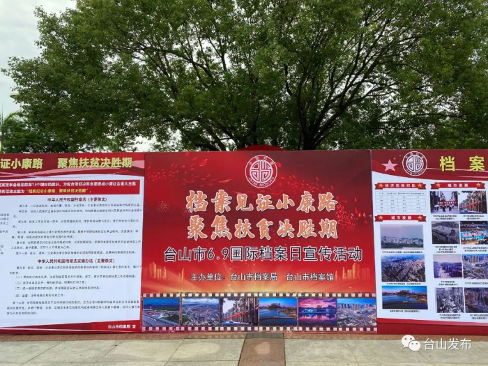 6月9日是国际档案理事会确定的第十三个国际档案日,当天上午,市档案局在台城石化文化广场举行以“档案见证小康路、聚焦扶贫决胜期”为主题的档案文化展。