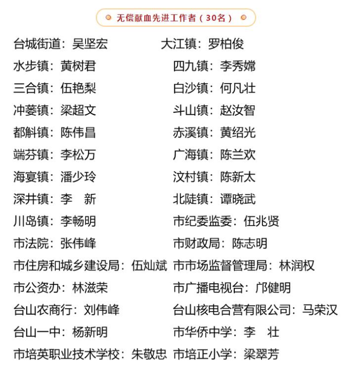 近日,市献血办对2018-2019年度30个“无偿献血优秀组织奖”单位和30名“无偿献血先进工作者”进行通报表扬。