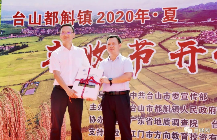 活动期间,现场举行了《台山市中国农业公园都斛地区土地质量地球化学调查应用示范》项目初步成果报告移交仪式和都斛镇数字乡村试点镇规划建设项目签约仪式。在场领导嘉宾共同为台山中国农业公园禾海稻浪农渔文体旅融合试验项目揭牌,为早稻收割开镰。
