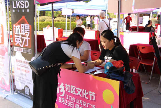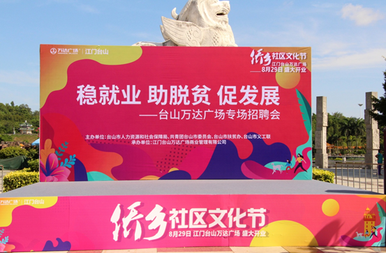 7月25日,台山市“稳就业 助脱贫 促发展”台山万达广场专场招聘会在石化山文化广场顺利举办。本场招聘会是自新冠肺炎疫情以来台山首场线下专场招聘会,由台山市人力资源和社会保障局、共青团台山市委员会、台山市扶贫办、台山市义工联主办,江门台山万达广场商业管理有限公司承办。招聘会现场共有近50多个招聘单位摆摊设点,主要以餐饮、服饰、超市等行业为主,较为紧缺的岗位是服务类人员。