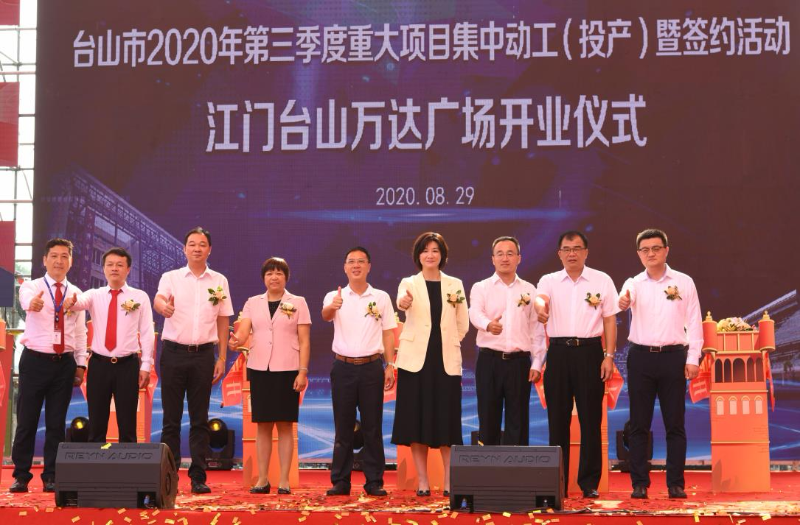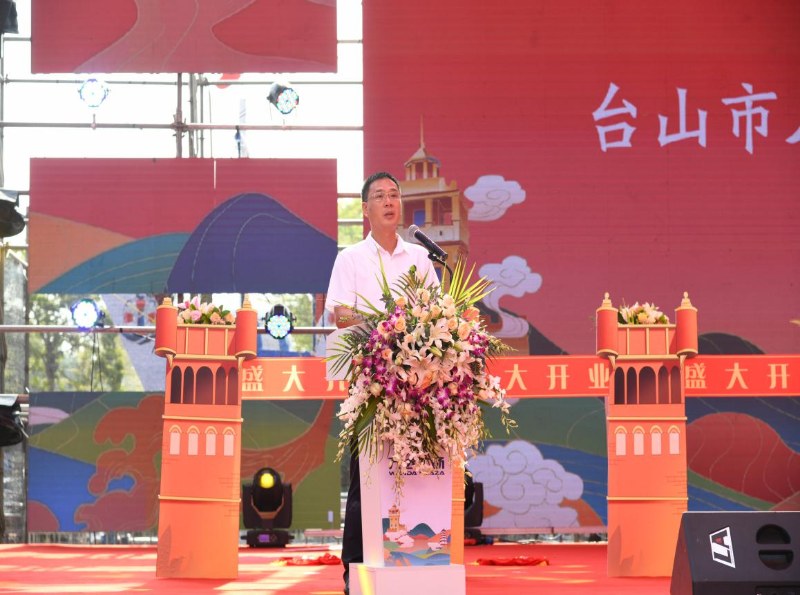8月29日上午,台山市重点商业项目台山万达广场盛大开业,台山市人民政府副市长方健康、市政协副主席陈翠芹、市科工商务局局长容志坚等领导出席第三季度重大项目集中动工(投产)活动暨江门台山万达广场开业仪式,方健康副市长代表市委、市政府致辞。方健康副市长表示台山正迎来粤港澳大湾区建设的最大发展机遇,万达广场落地台山是万达集团抓住发展机遇的充分表现,更是地方合作的结晶,台山万达广场的建成开业,将为我市发展注入新的活力。