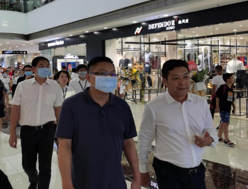 当天下午,赵智健副市长带队到万达广场检查体温检测、防疫消毒、临时隔离点设置等防控措施落实情况,市科工商务局局长容志坚陪同。赵智健副市长强调商场作为人员密集场所,防疫工作是重中之重,商场要严格落实落细各项防控措施主体责任,坚决筑牢疫情防控“防火墙”,同时要确保餐饮单位、超市熟食区食品卫生,让消费者在万达广场购物放心,吃得安心。