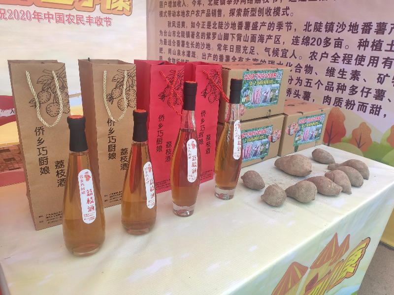 北陡镇下洞村第一书记雷源聪表示,他们带来了下洞的沙地五彩番薯套餐和荔枝酒,希望借这次机会推广产品,达到帮助当地村民、农民增产增收。