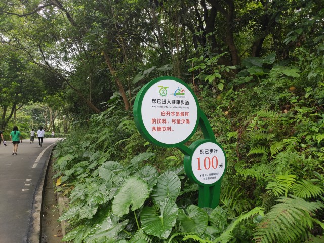 上午,伴随着清脆悦耳的鸟鸣,石化山公园里到处弥漫着清爽湿润的空气,市民们正享受着“绿色”时光,或一家人散步、或独自慢跑、或三两知己“切磋舞艺”、或利用健身器材锻炼……沿着绿道入口方向,“健康主题公园”的标识醒目可见,一路上设置了健康素养宣传栏和引导牌,市民可以在休闲娱乐的同时获取健康知识和技能,提高自身健康素养。一些家住附近的运动爱好者都喜欢过来“打卡”锻炼。