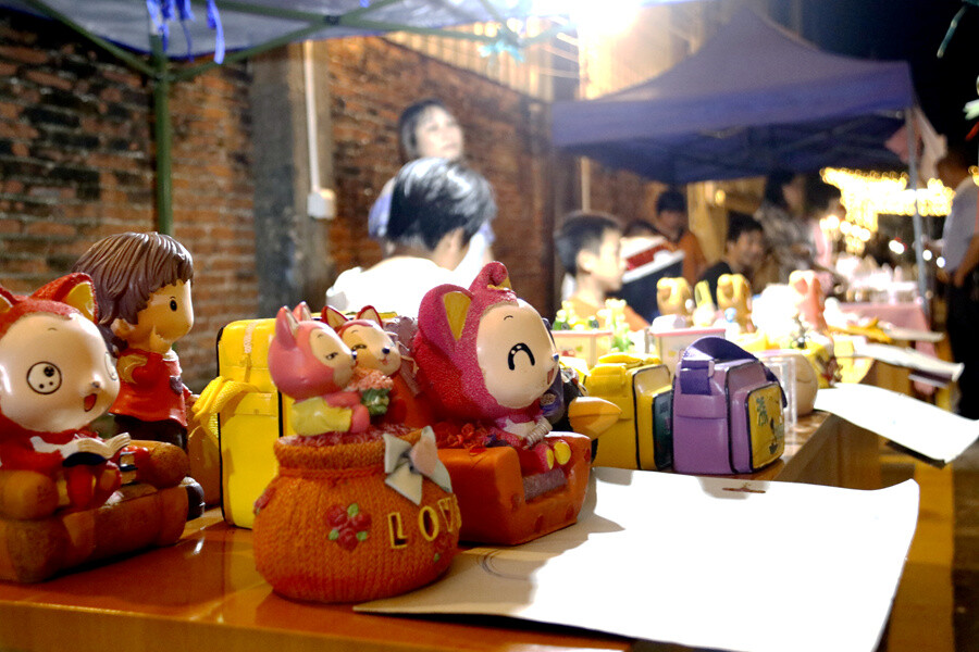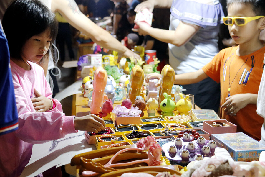 百货、饰品、美食、玩具……各色新奇好玩的创意产品琳琅满目。现场新鲜制作的芋糍、咸鸡笼、咸水角等特色美食最受追捧,一起锅就被抢购一空。璀璨的灯光下,热闹的市集吸引了大量市民和游客。