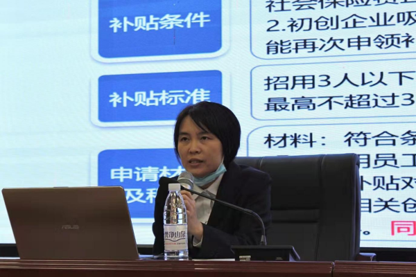 本次培训针对人力资源管理和服务人员设置了多层次、全方位的课程体系,旨在提升人力资源从业者的执行能力与领导能力,充分发挥人力资源服务的社会力量,围绕人才引进、培育、发展、评价、激励和服务等方面开展人力资源从业者素质培养训练营活动。本期赋能培训邀请了台山市人社局就业促进股股长何淑冰,带来有关就业创业政策的分享,助力企业可持续发展。