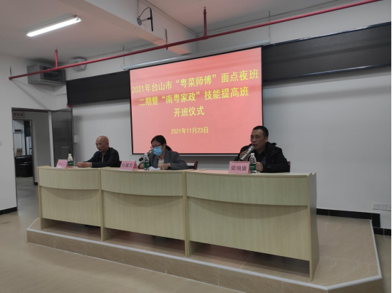为进一步提升“粤菜师傅”工程和“南粤家政”工程的效能,加大技能人才培养力度,促进就业创业,推动三项工程高质量发展。11月23日,2021年台山市“粤菜师傅”面点夜班二期暨“南粤家政”技能提高班在广东厨艺技工学校开班,43名台山市“南粤家政”培训班结业学员参加此期技能培训,台山市人社局副局长肖雄英出席了开班仪式。